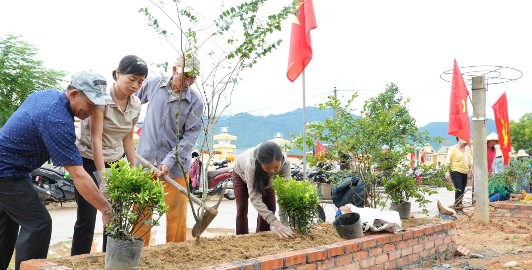 នៅភូមិ Hoa Mau ផ្លូវឥឡូវមានគ្រែផ្កាស្អាត គុម្ពោតផ្កា bougainvillea ផ្កាជញ្ជាំង ផ្កា peonies... កំពុងរីកដុះដាល។ នៅកណ្តាលផ្លូវ ប្រជាជននៅទីនេះធ្វើការរួមគ្នាដើម្បីបោសសម្អាត និងថែរក្សារុក្ខជាតិផ្កា ដែលហាក់ដូចជាការងារតូចតាច ប៉ុន្តែរួមចំណែកដល់ការផ្លាស់ប្តូរដ៏អស្ចារ្យ។