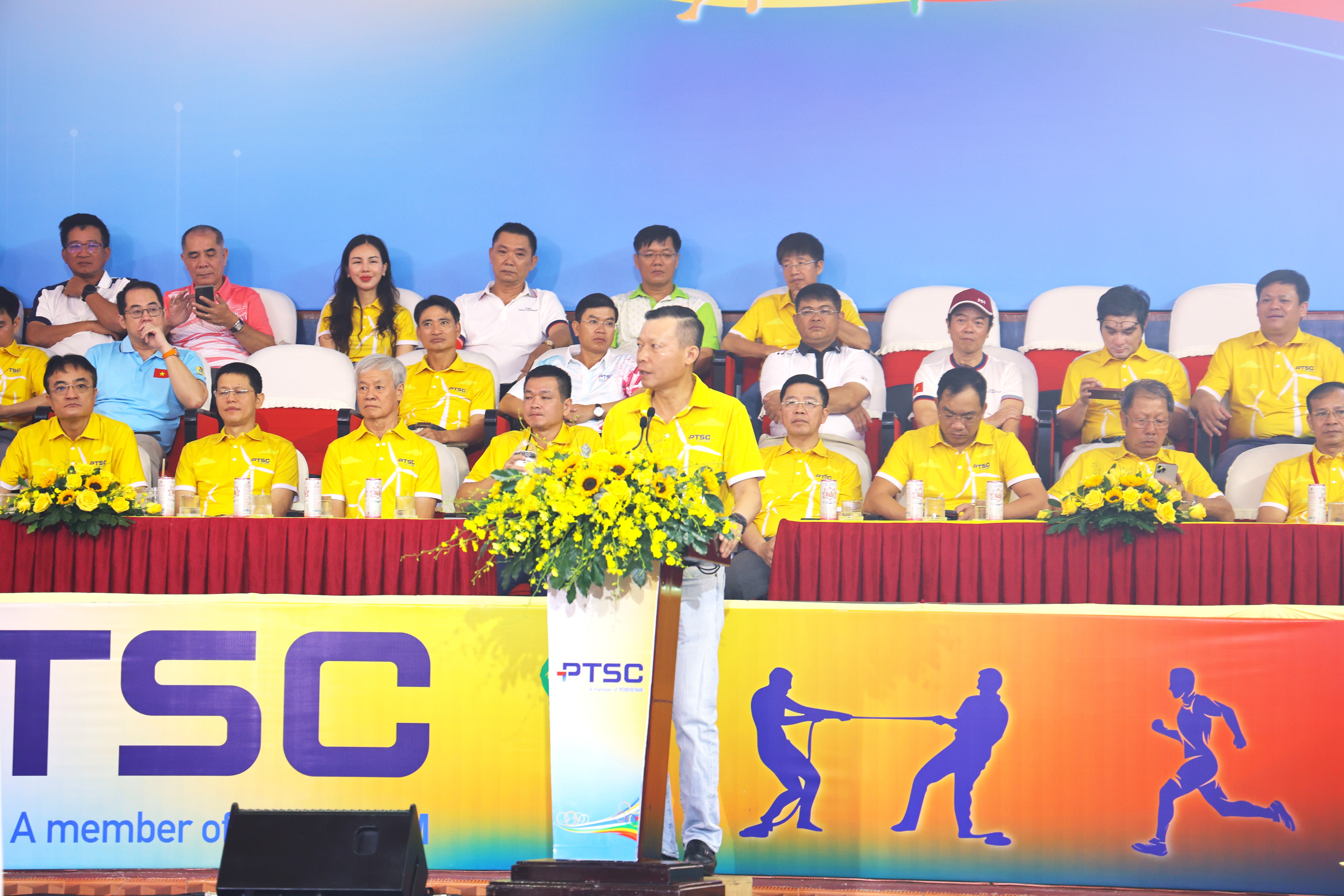 អញ្ជើញថ្លែងមតិក្នុងពិធីបើក លោក Nguyen Tran Toan ប្រធានសម្ព័ន្ធពាណិជ្ជកម្មនៃសាជីវកម្មបានមានប្រសាសន៍លើកទឹកចិត្ត និងលើកទឹកចិត្តដល់ស្មារតីប្រកួតប្រជែងរបស់អត្តពលិក ដោយបញ្ជាក់ពីសារៈសំខាន់ដ៏ជ្រាលជ្រៅនៃពិធីបុណ្យកីឡាក្នុងការលើកកម្ពស់សុខភាព បង្កើតភាពស្អិតរមួត និងផ្សព្វផ្សាយស្មារតីកីឡាទូទាំងសាជីវកម្ម PTSC ។