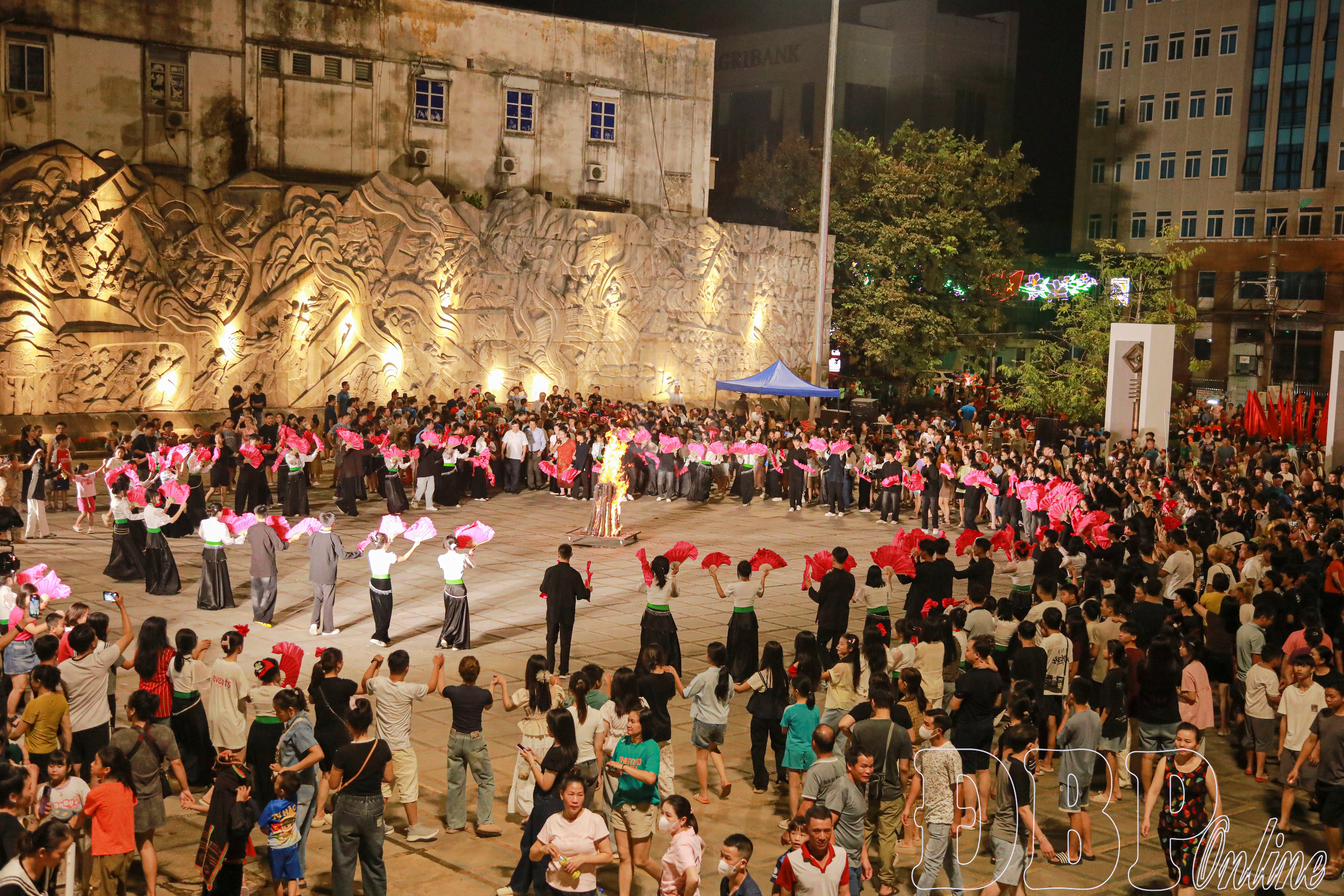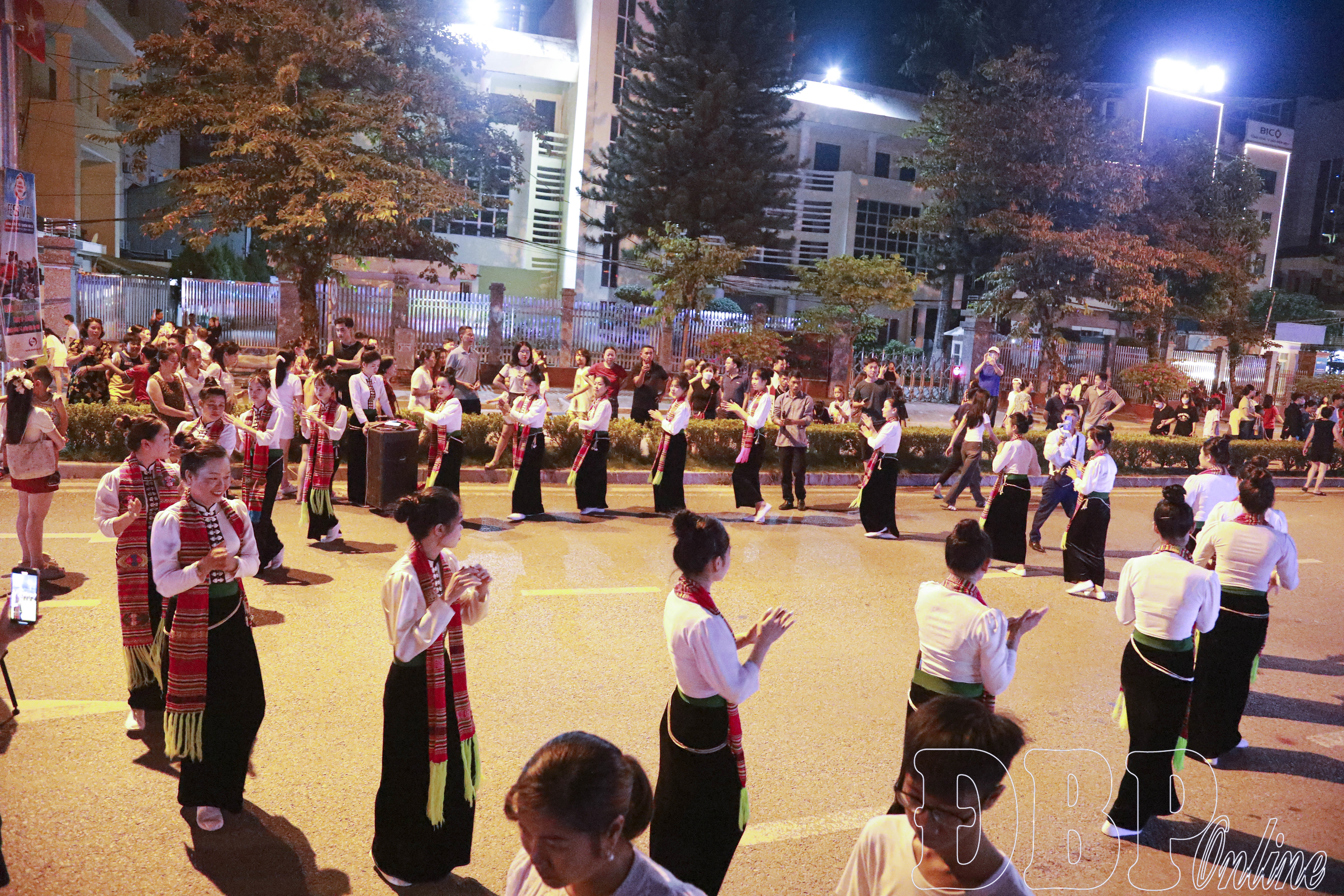 ភ្លាមៗនោះ មនុស្សនិងភ្ញៀវទេសចររាប់ម៉ឺននាក់បានសម្រុកទៅសងខាងផ្លូវ Vo Nguyen Giap រង់ចាំ ពិធីបុណ្យ តាមដងផ្លូវ។ ប្លុក សម្តែង ត្រូវបានរៀបចំឡើងតាមប្រធានបទនីមួយៗ តំបន់នីមួយៗ នាំទស្សនិកជនធ្វើដំណើរកម្សាន្តចម្រុះពណ៌នៃវប្បធម៌ភាគពាយ័ព្យ នៃសាមគ្គីភាពជាតិ និងមិត្តភាពអន្តរជាតិ។ ពេល ស្គរបើកបានបន្លឺឡើងភ្លាម ផ្លូវបានផ្ទុះឡើងដោយ ការអបអរ និងទះដៃ។ ការសម្ដែង ចម្រុះពណ៌បានលេចឡើងម្ដងមួយៗ៖ របាំ Xoe របស់ថៃស្រទន់ របាំខ្លុយម៉ុងដ៏អ៊ូអរ របាំឡាវដ៏ត្រេកត្រអាល Xao Xieng Khouang ; របាំមួករាងសាជី ហា ញី ដ៏ស្វាហាប់ ...