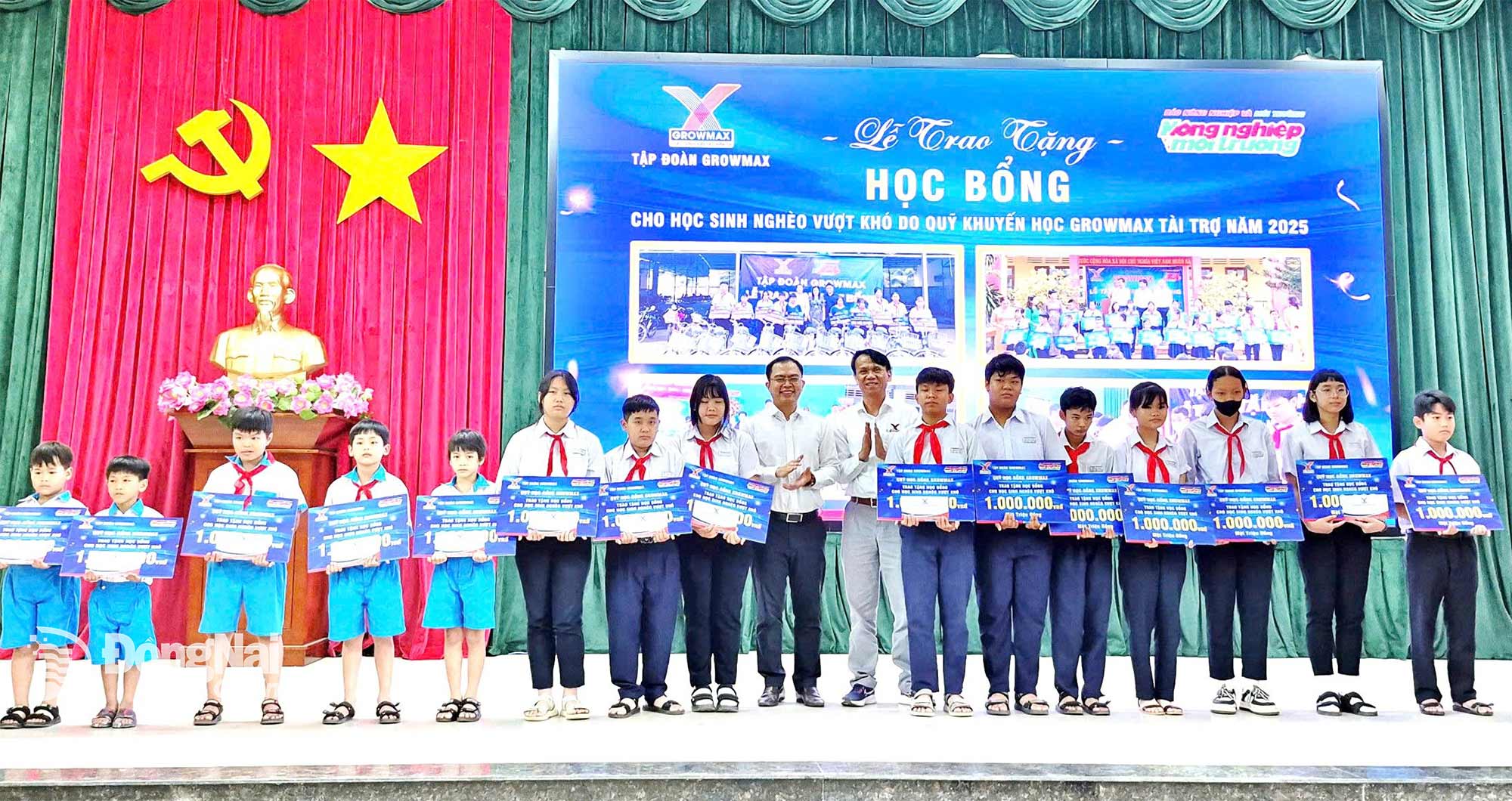 ថ្នាក់ដឹកនាំឃុំ Long Thanh ផ្តល់អាហារូបករណ៍ដល់សិស្សដែលជួបការលំបាកដែលបានរៀនពូកែ និងមានជីវភាពធូរធារនៅឃុំ Long Thanh។ រូបថត៖ DPCC |
