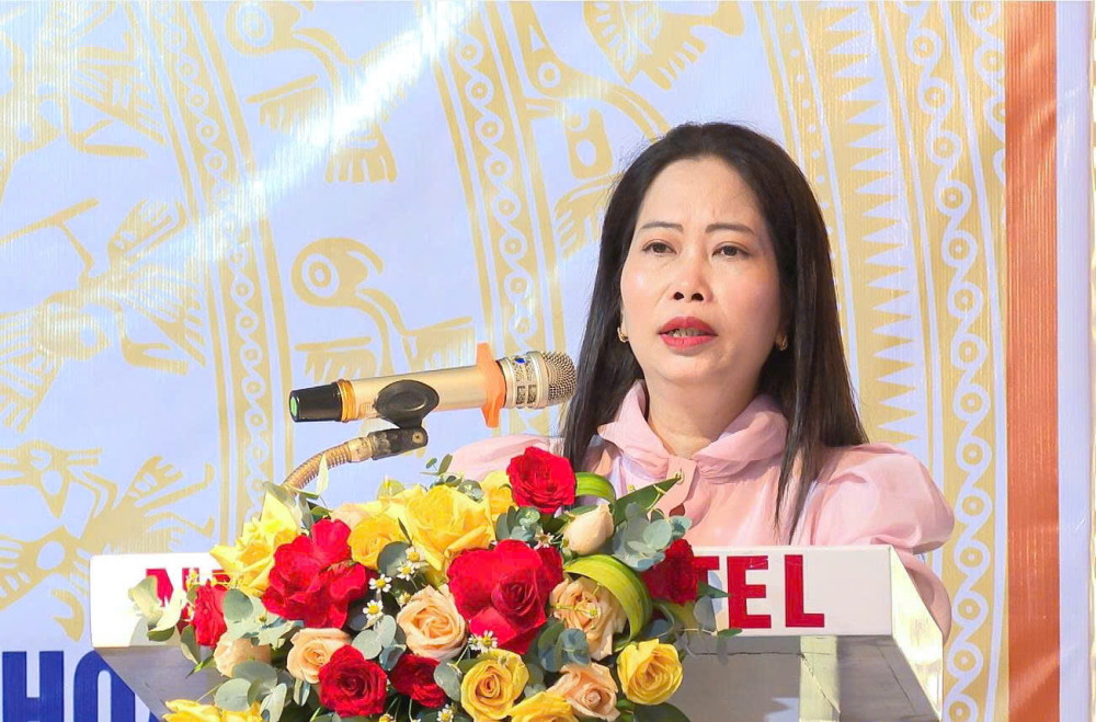 អនុប្រធាននាយកដ្ឋានវប្បធម៌ កីឡា និងទេសចរណ៍ Tran Thi Huy Hoang ថ្លែងសុន្ទរកថាបើកវគ្គបណ្តុះបណ្តាល។