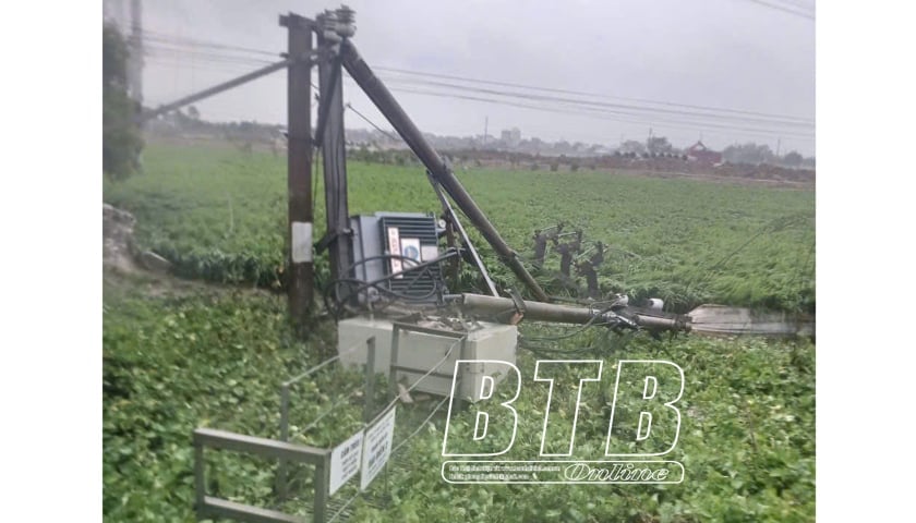 នេះបើតាមរបាយការណ៍របស់ក្រុមហ៊ុនអគ្គិសនី Thai Binh គិតត្រឹមម៉ោង ៣ រសៀល។ ថ្ងៃទី 7 ខែកញ្ញា ឥទ្ធិពលនៃព្យុះទី 3 បង្កបញ្ហានៅក្នុងហេដ្ឋារចនាសម្ព័ន្ធបណ្តាញអគ្គិសនីនៃខេត្ត Thai Binh; រួមទាំងខ្សែបណ្តាញ 4 110 kV ស្ថានីយបំលែងថាមពល 3 110 kV និងខ្សែតង់ស្យុងមធ្យមជាង 80 ដែលបណ្តាលឱ្យអតិថិជនប្រហែល 570,000 នាក់បាត់បង់ថាមពល។