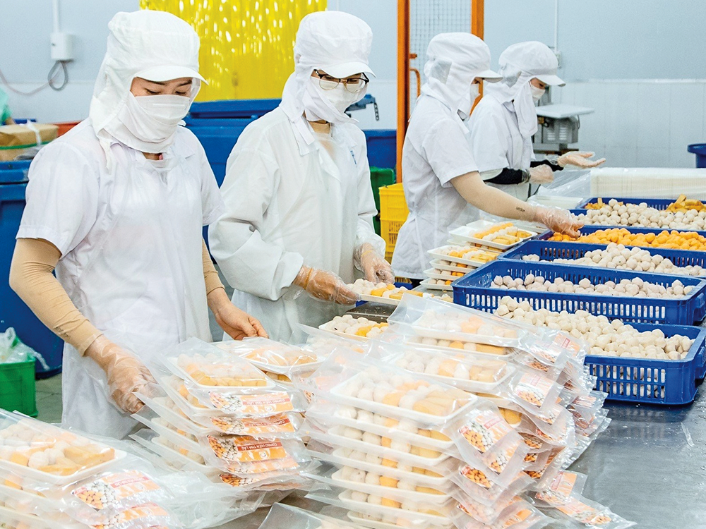 សកម្មភាពកែច្នៃគ្រឿងសមុទ្រនៅសិក្ខាសាលាផលិតកម្មនៃផលិតកម្ម Nhat Tam - សហករណ៍ពាណិជ្ជកម្ម នៅសួនឧស្សាហកម្ម Tra Noc 2។