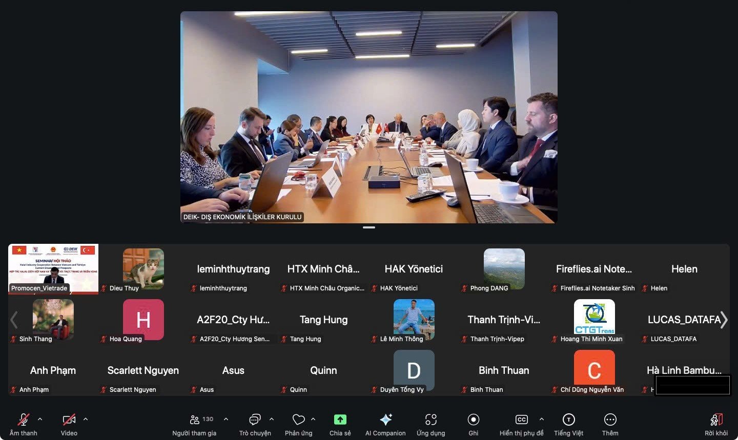 វាយតំលៃទំនាក់ទំនងពាណិជ្ជកម្មរវាងប្រទេសទាំងពីរ លោក Le Hoang Tai អនុប្រធានទីភ្នាក់ងារជំរុញពាណិជ្ជកម្ម បានឲ្យដឹងថា ក្នុងប៉ុន្មានឆ្នាំថ្មីៗនេះ ទំនាក់ទំនងសេដ្ឋកិច្ច និងពាណិជ្ជកម្មរវាងវៀតណាម និង Türkiye មានការរីកចម្រើនយ៉ាងសំខាន់។ ទំហំពាណិជ្ជកម្មទ្វេភាគីបានរក្សាសន្ទុះកំណើនរបស់ខ្លួន ដោយឈានដល់ជាង 2 ពាន់លានដុល្លារក្នុងឆ្នាំ 2024។