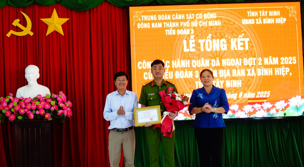ក្នុងឱកាសនេះ គណៈកម្មាធិការប្រជាជនឃុំ Binh Hiep បានប្រគល់ប័ណ្ណសរសើរដល់កងវរសេនាតូចលេខ៣ កងវរសេនាធំនគរបាលចល័តភាគអាគ្នេយ៍នៃទីក្រុងហូជីមិញ និងនាយទាហាន និងពលទាហានមួយចំនួន។/.