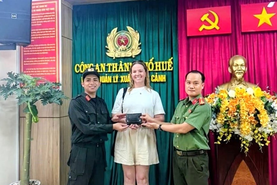 ប៉ូលីសទីក្រុង Hue បានប្រគល់ទ្រព្យសម្បត្តិដែលបាត់បង់ទៅឱ្យអ្នកទេសចរ Georgia Burnett |