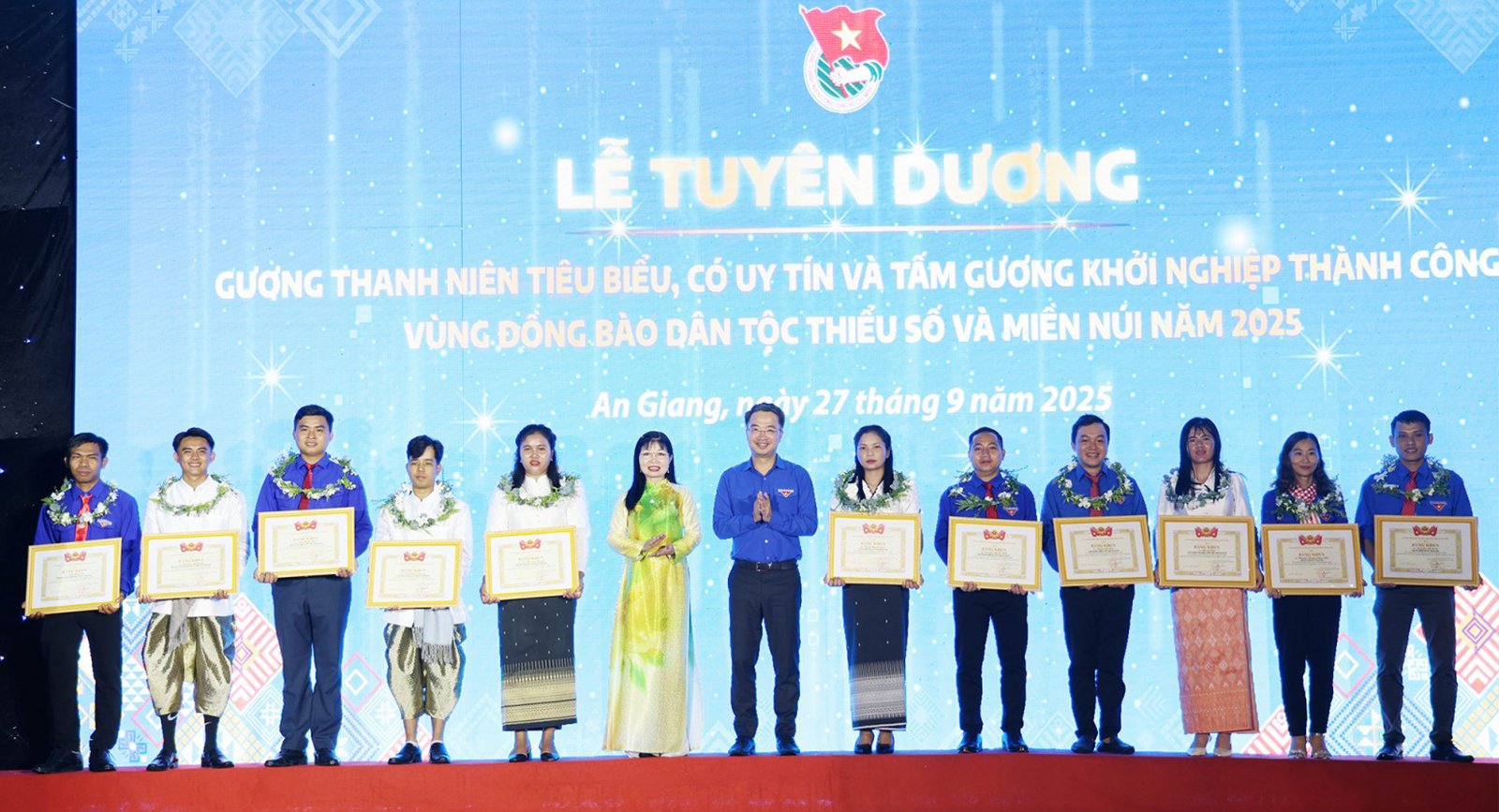 ក្នុងពិធីនេះ លេខាធិការដ្ឋានមជ្ឈិម សម្ព័ន្ធយុវជនកុម្មុយនិស្តហូជីមិញ បានប្រគល់ប័ណ្ណសរសើរដល់យុវជនជនជាតិភាគតិចគំរូ និងកិត្យានុភាពចំនួន 26 នាក់ ដែលជាអ្នកចាប់ផ្តើមអាជីវកម្មប្រកបដោយជោគជ័យនៅតំបន់ជនជាតិភាគតិច និងតំបន់ភ្នំក្នុងឆ្នាំ 2025។