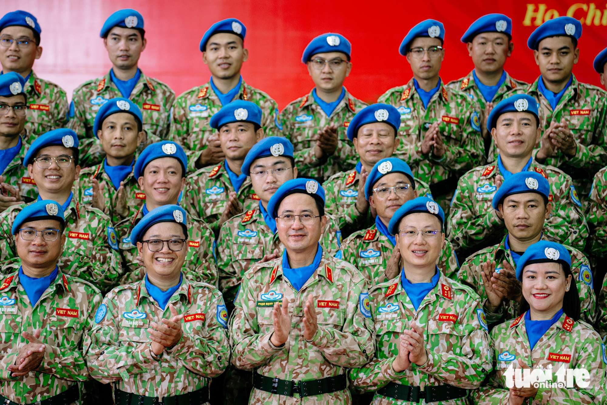 ទាហាននៃមន្ទីរពេទ្យវាល 2.7 លើកាតព្វកិច្ចរក្សាសន្តិភាពនៅស៊ូដង់ខាងត្បូងថតរូបក្នុងពិធីចាកចេញនៅព្រឹកថ្ងៃទី 22 ខែកញ្ញា - រូបថត: THANH HIEP