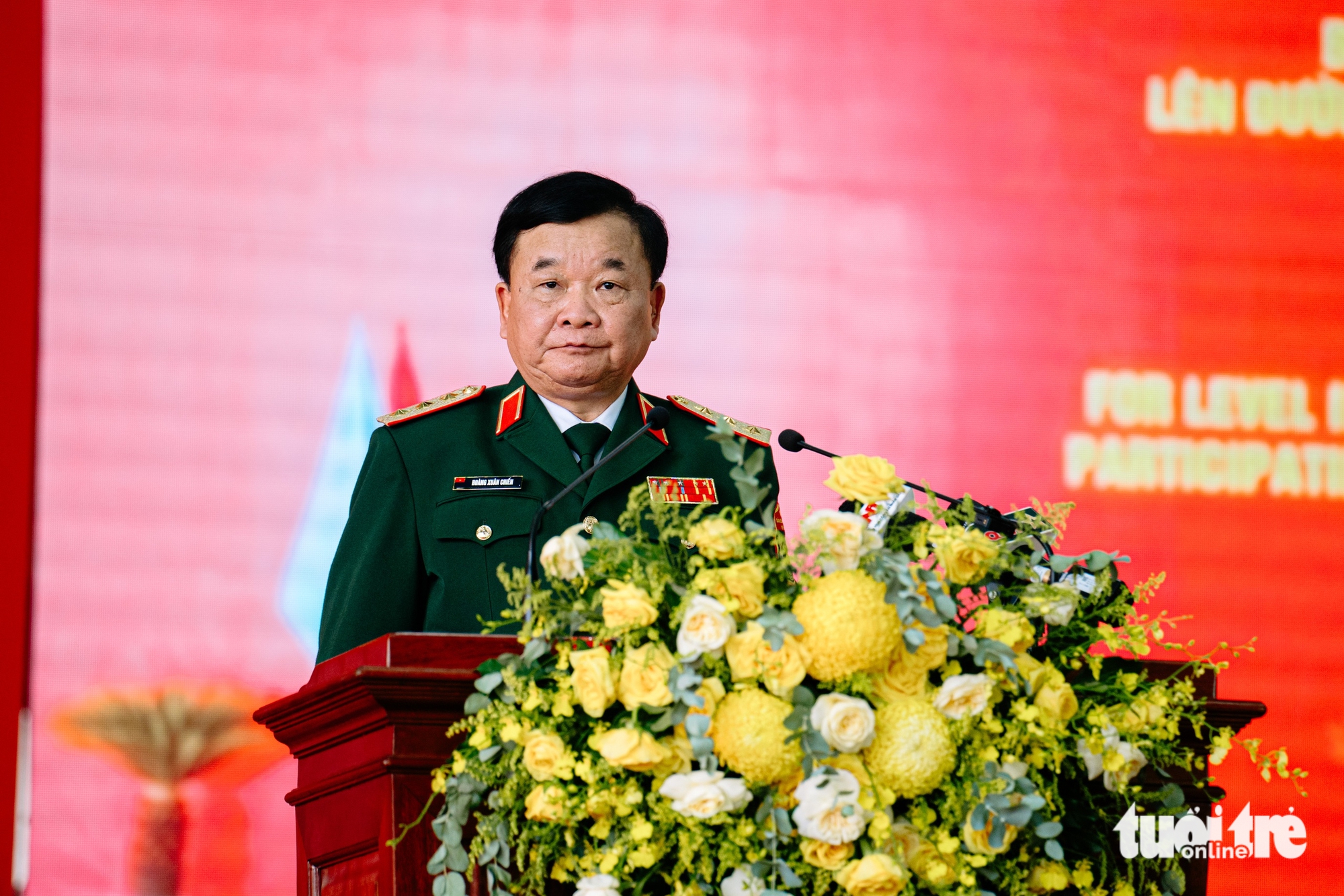 ឧត្តមសេនីយ៍ឯក Hoang Xuan Chien អនុរដ្ឋមន្ត្រីក្រសួងការពារជាតិ អញ្ជើញថ្លែងសុន្ទរកថាក្នុងពិធី - រូបថត៖ THANH HIEP