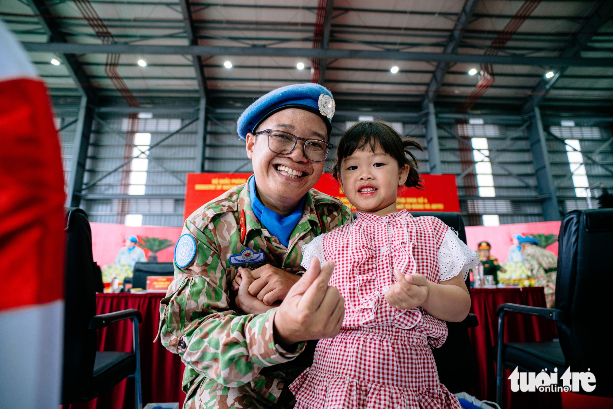 មុនពេលពិធីនេះ ឧត្តមសេនីយ Tran Duc Tai បានចំណាយពេលជាមួយកូនស្រីរបស់គាត់។ លោកថានឹងព្យាយាមឱ្យអស់ពីសមត្ថភាពដើម្បីបំពេញកិច្ចការដែលបានចាត់ទុក ហើយត្រឡប់មកជួបជុំគ្រួសារតូចវិញ - រូបភាព៖ THANH HIEP