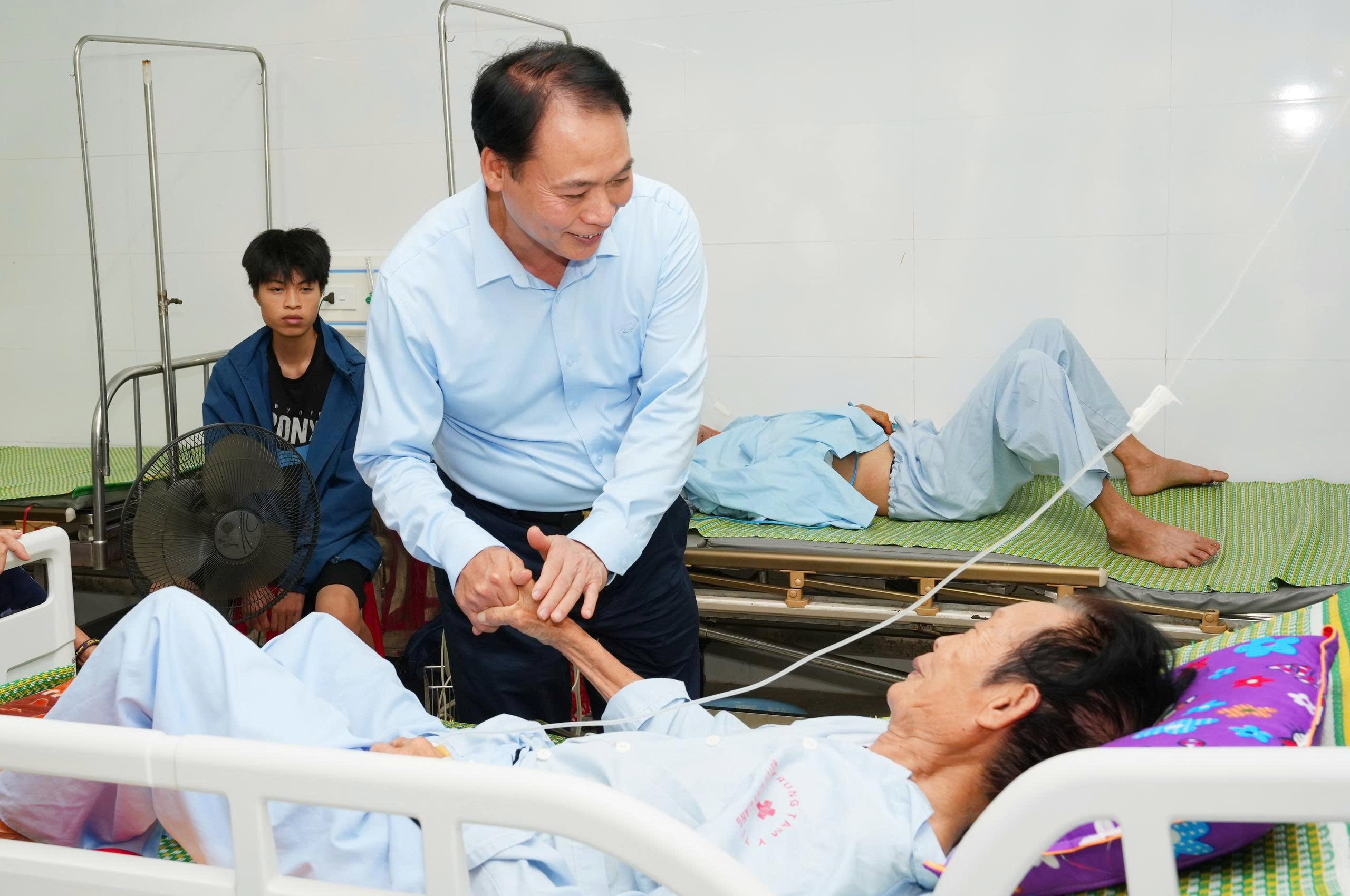 សាស្ត្រាចារ្យរង - លោកវេជ្ជបណ្ឌិត Le Minh Quang ប្រធាននាយកដ្ឋានសុខាភិបាល ចុះសួរសុខទុក្ខអ្នកជំងឺដែលកំពុងសម្រាកព្យាបាលនៅមជ្ឈមណ្ឌលវេជ្ជសាស្ត្រ Ninh Giang។