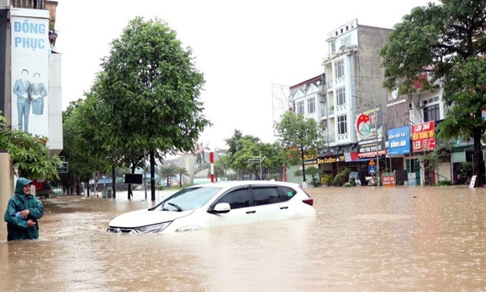 타이응우옌의 중심가는 물에 잠겨 있습니다. |