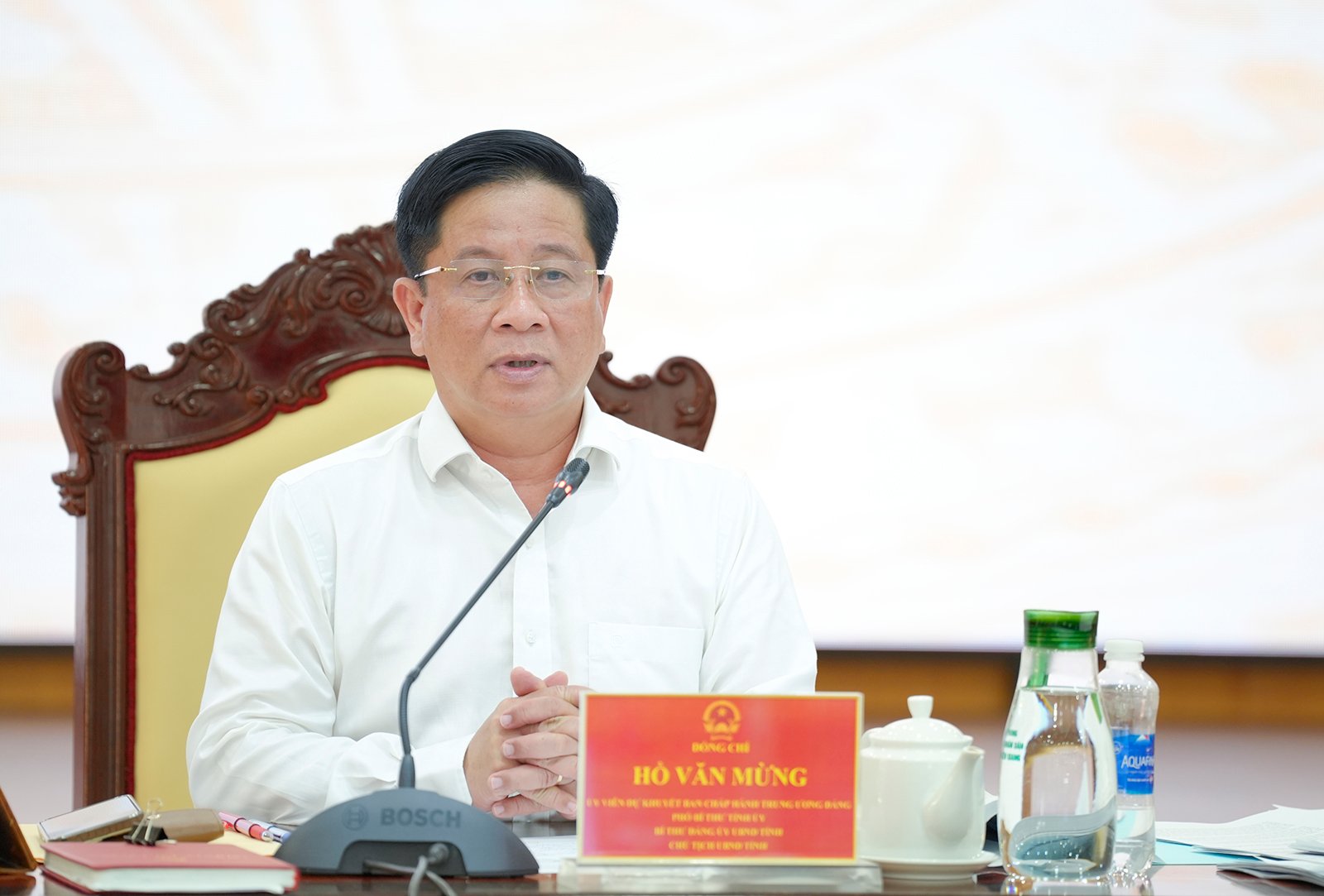 안장성 내무부 부장인 응우옌 누 아인(Nguyen Nhu Anh) 성 당위원회 위원 겸 부장이 회의에서 연설했습니다.