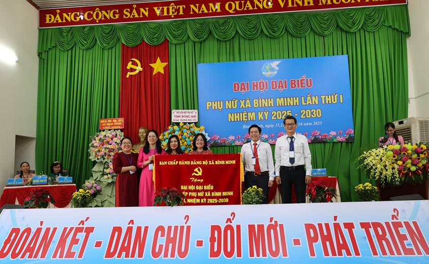이 자리에서 빈민사당 집행위원회는 "단결 - 민주주의 - 혁신 - 개발"이라는 문구가 적힌 현수막을 대회에 전달했습니다.출처: https://dongnai.gov.vn/vi/news/tin-dia-phuong/dai-hoi-dai-bieu-phu-nu-xa-binh-minh-lan-thu-nhat-nhiem-ky-2025-2030-56466.html