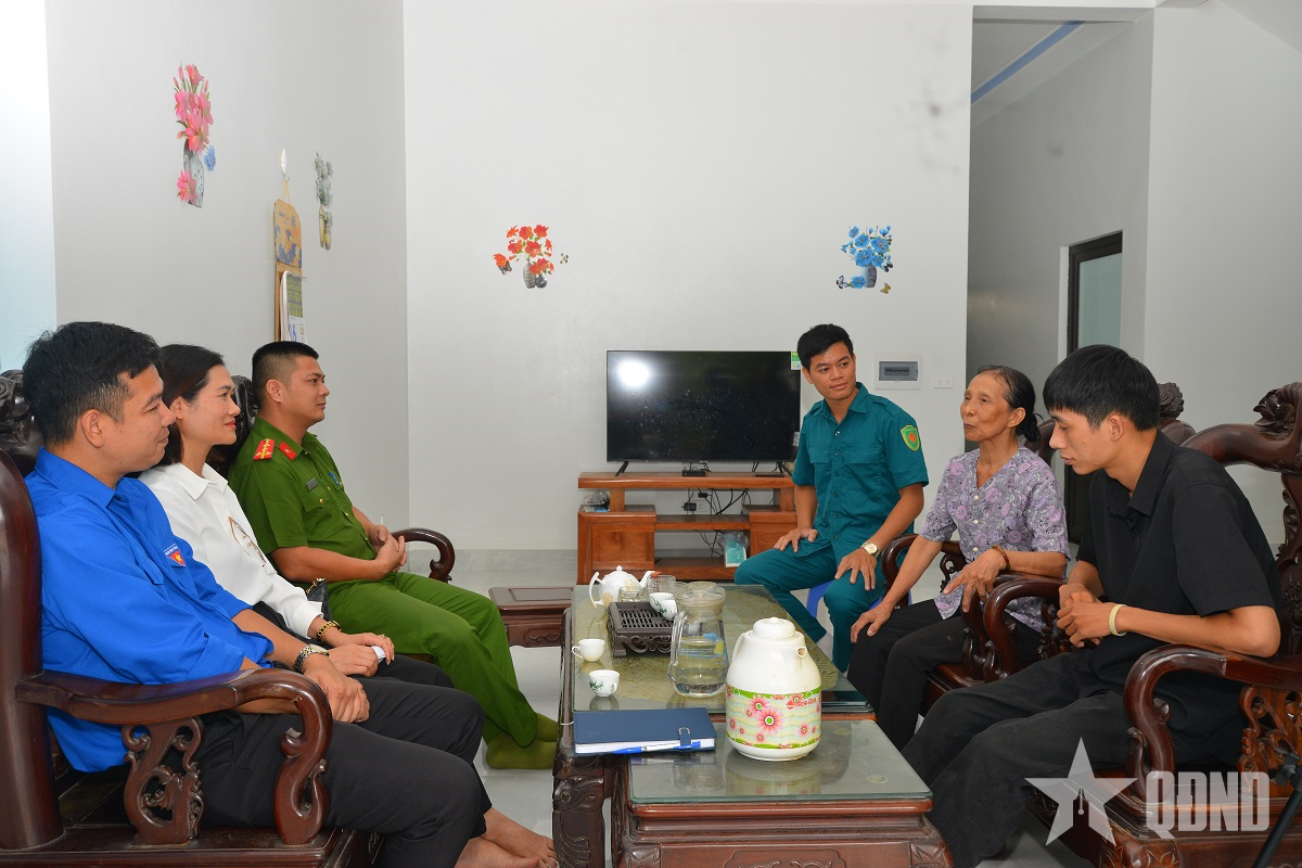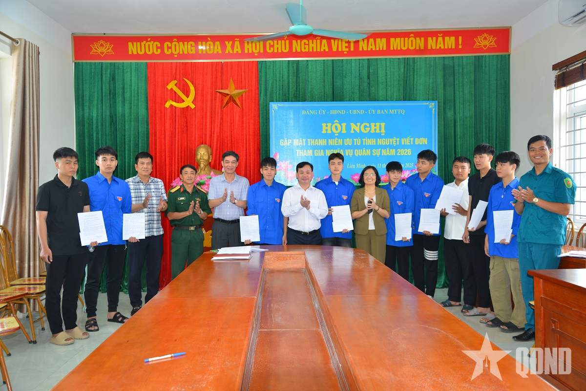 리엔민사 2026년 신병 모집 선전팀은 청년 응우옌 카취안을 집에서 칭찬했다. |