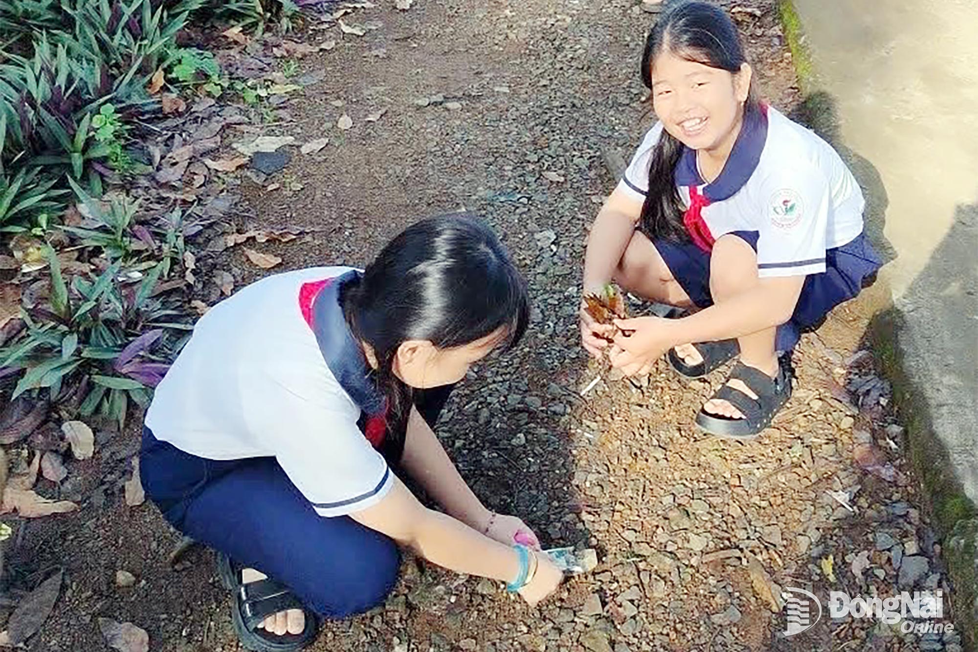 다우지아이 마을 학생들이 환경 위생 활동에 참여하고 있다. 사진: 득 티엔 |