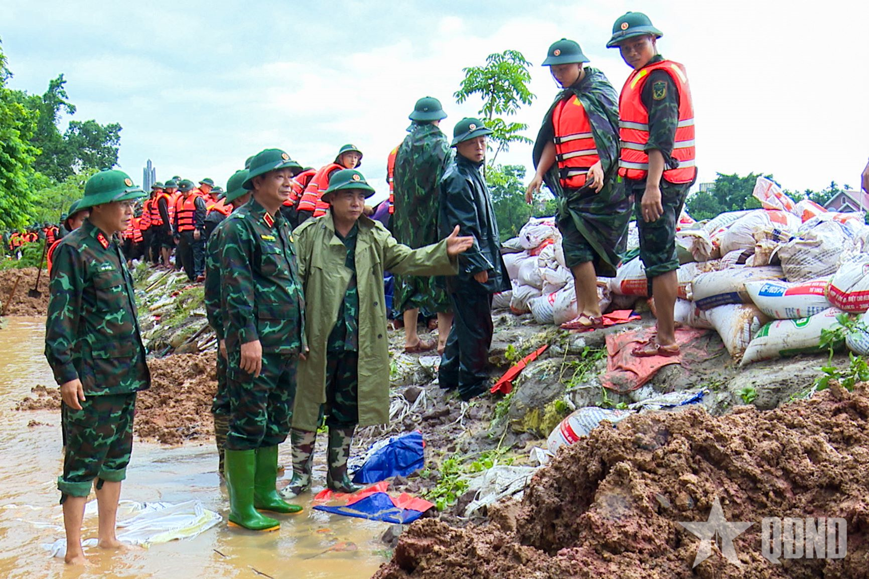 군사구는 각 기관 및 부대에 정규군, 민병대, 자위대 소속 장교 및 병사 13만 2천 명 이상과 각종 차량 6,500여 대를 동원하여 위험 지역에서 약 2만 6,600가구와 12만 명 이상의 주민을 구조 및 대피시키고, 주요 제방 경로에 총 30km가 넘는 제방을 보강하며, 고립된 지역 주민들에게 구호물품과 식수를 공급, 분배 및 조정하도록 지시했습니다. 또한 군사구는 국방부에 제12군단, 하노이 수도사령부, 방공군, 특수부대, 공병, 화학부대 등의 병력과 차량을 지원하여 각 성(省)의 자연재해 대응 및 극복을 지원해 줄 것을 요청했습니다. 지역 군부대와 국방부 동원 병력은 지역 당위원회, 당국, 군구(軍區) 군 병력과 협력하여 주민들에게 적극적으로 대응하고 지원했으며, 특히 제방 보호 및 위험 지역 주민 구조 활동에 주력했습니다. 또한 많은 부대가 취사 지원, 임시 주택 건설, 환자 검진 및 치료, 무료 의약품 제공 등을 통해 수해 지역 주민들의 생명 보호에 기여했습니다.