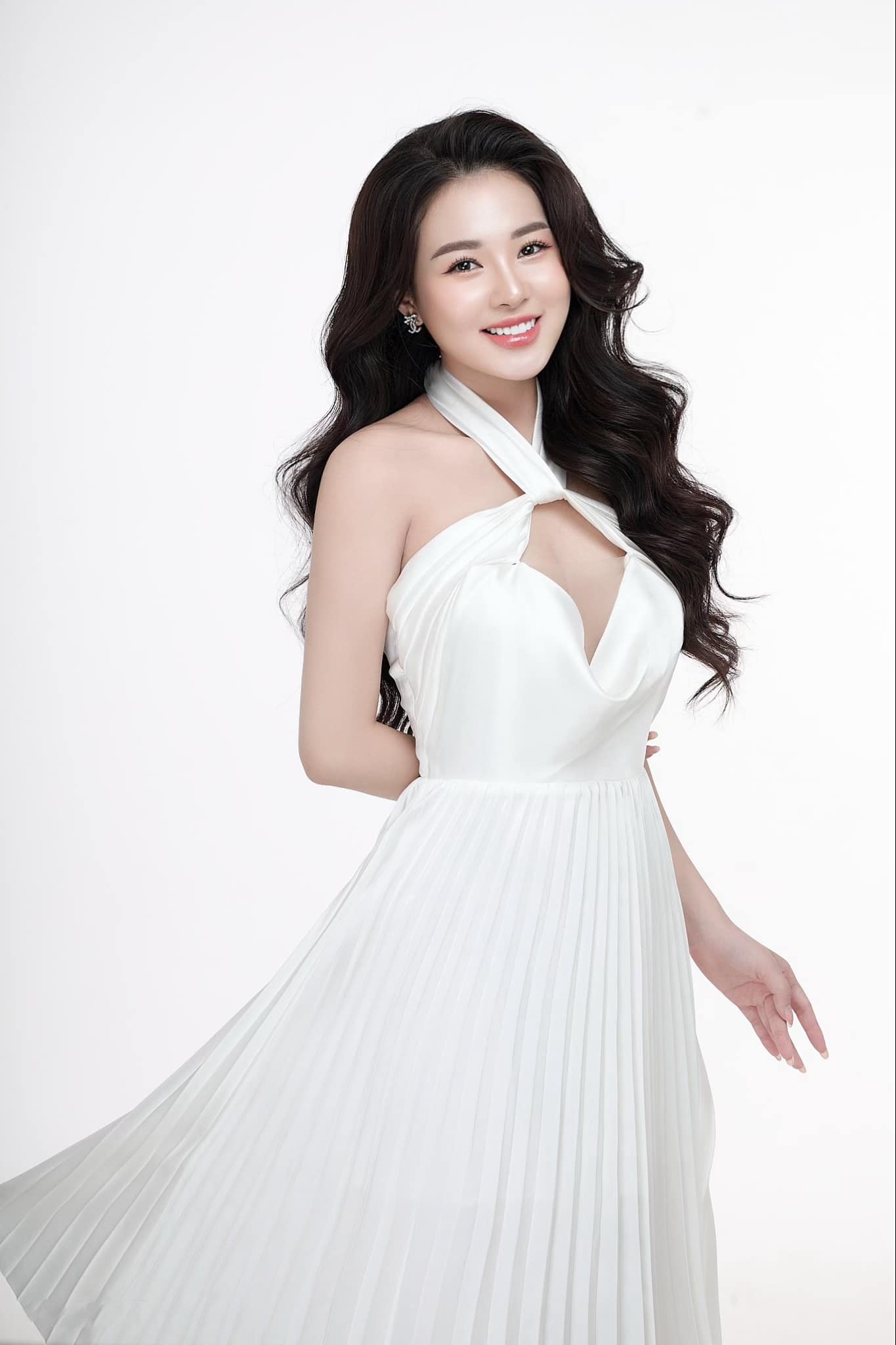 남딘 출신의 미녀는 늘씬한 몸매와 매끈한 하얀 피부를 뽐내는 눈길을 사로잡는 드레스를 선택했습니다. (사진: FBNV)
