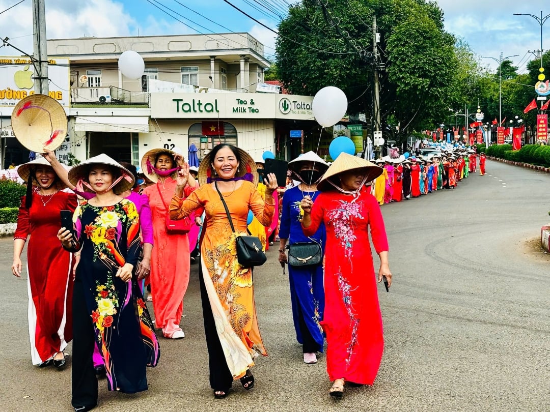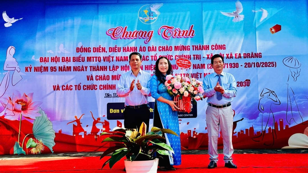 10월 19일 오전, 에아 드랑 공동체 여성 연합은 지역 내 47개 여성 협회 회원 1,500명 이상이 참여하는 가운데 아오자이 공연과 퍼레이드를 조직했습니다.
