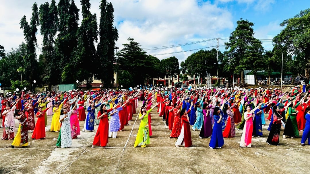 124명의 여성 조합원이 부른 "투반" 노래에 맞춰 진행된 앙상블 공연은 아름다운 몸매와 우아한 아오자이의 모습, 심오한 음악이 어우러져 강렬한 인상을 남겼으며, 베트남 여성의 민족적 자부심과 사회에 기여하고자 하는 의지를 전달했습니다.