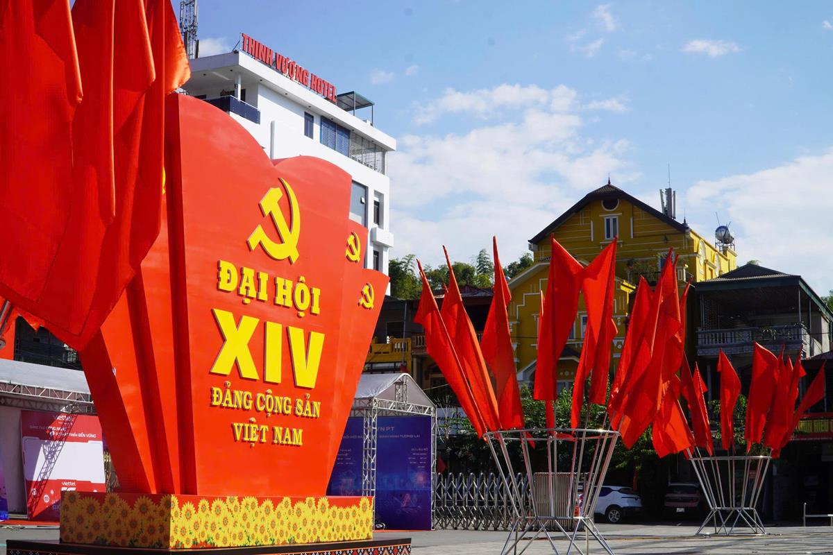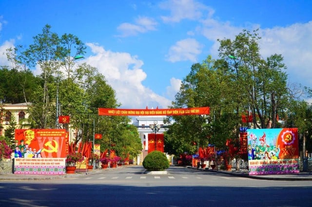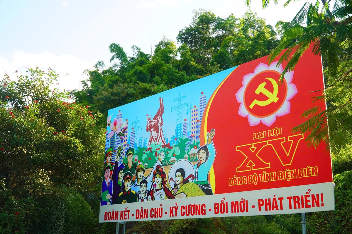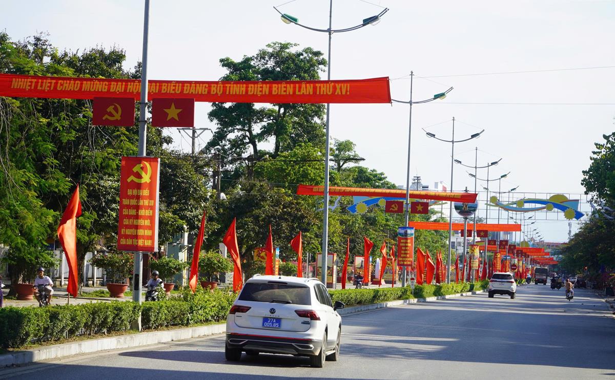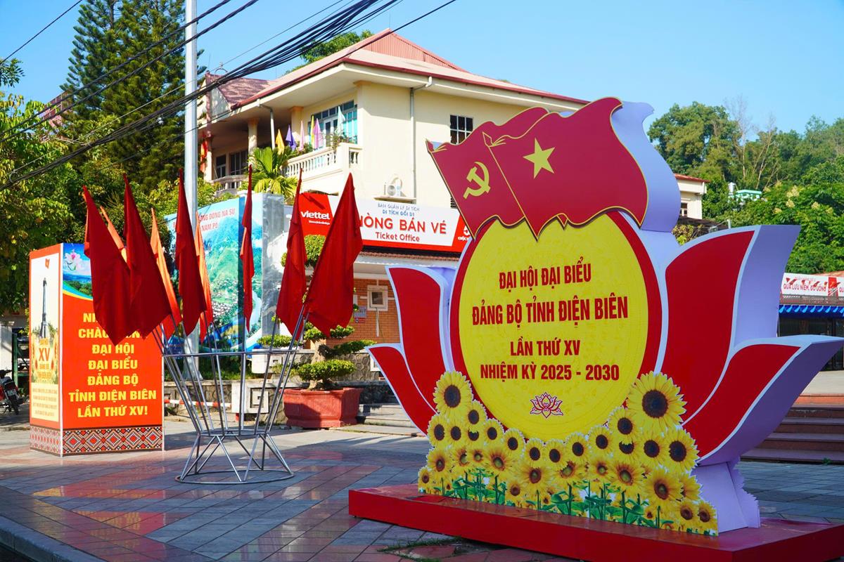 요즘 디엔비엔 성의 모든 도로, 주거 지역, 본부, 학교, 행정 센터 등에서 2025~2030년 임기인 제15차 디엔비엔 성 당대회를 환영하는 붉은색 깃발, 구호, 광고판, 시각적 선전 포스터를 쉽게 볼 수 있습니다.