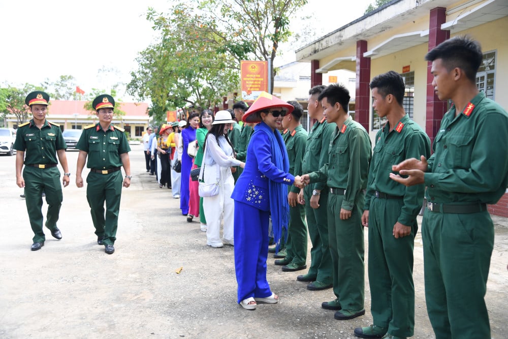 대표단은 조국 수호를 위해 목숨을 바친 영웅적인 순교자들을 기리기 위해 뚜옌빈(Tuyen Binh) 사찰 롱콧(Long Khot) 사원을 방문하여 분향했습니다. 이어서, 대표단은 이 지역의 군대와 학교를 방문하여 교류하고 선물을 전달했으며, 총 비용은 약 1억 3천만 동(VND)이었습니다.
