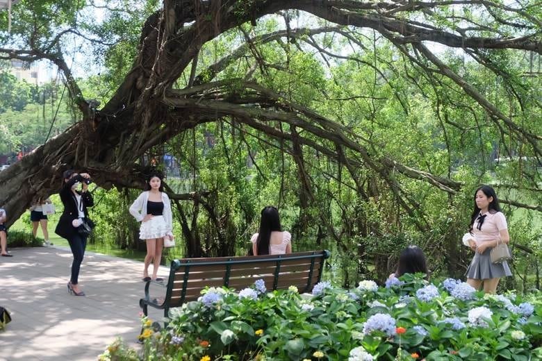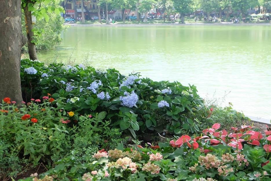 호안끼엠 호수는 하노이의 관광객과 젊은이들에게 오랫동안 친숙한 명소였습니다. 초가을에는 호수 표면과 호숫가를 따라 늘어선 나무들이 점차 노랗게 물들어 낭만적인 풍경을 연출합니다. 많은 젊은이들이 이곳에서 사진을 찍고, 체크인을 하고, 하노이의 가을을 만끽하는 특별한 순간들을 포착합니다.