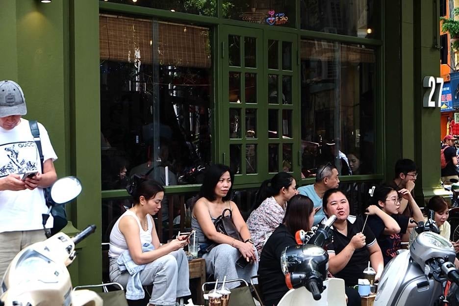 길가의 작은 카페들을 따라 갓 볶은 커피 향과 초봄에 피는 유채꽃 향이 어우러져 하노이 특유의 분위기를 자아냅니다. 많은 외국인 관광객들이 길가에 멈춰 서서 카푸치노나 레몬티를 마시며 지나가는 사람들을 구경하며 옛스러우면서도 신선한 하노이의 정취를 만끽합니다.