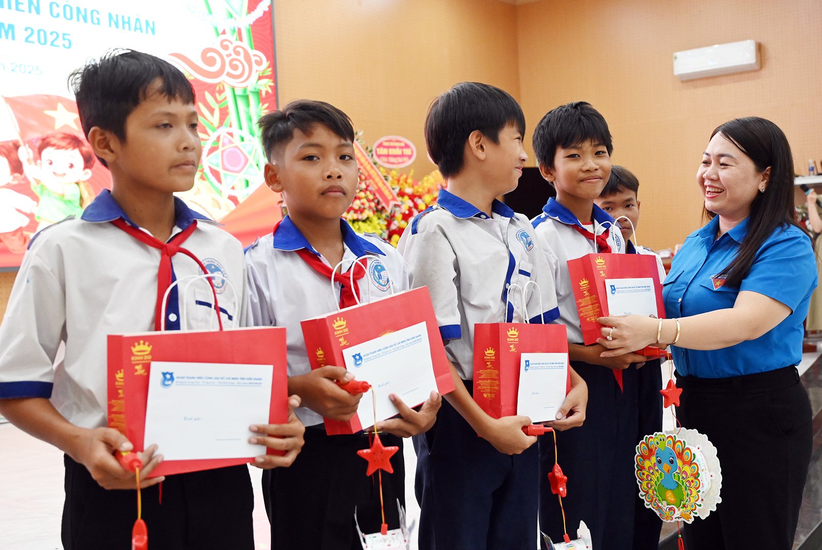 중추절 등불이 밝혀졌고, 아이들은 즐겁게 노래를 부르고, 등불을 들고, 선물과 케이크를 받았습니다. 2025년 중추절 행사는 빈안성 청년연합이 빈안읍 청년 노동자 자녀들에게 전하는 뜻깊은 정신적 선물이었습니다. 이 프로그램은 노동자 가정의 어려움을 함께 나누고 지지하는 의미를 지닐 뿐만 아니라, 공동체에 책임감과 나눔의 정신을 확산하고, 아이들이 열심히 공부하고, 선행을 실천하며, 사회에 기여하는 시민으로 성장하도록 돕는 연대의 분위기를 조성하는 기회이기도 합니다.