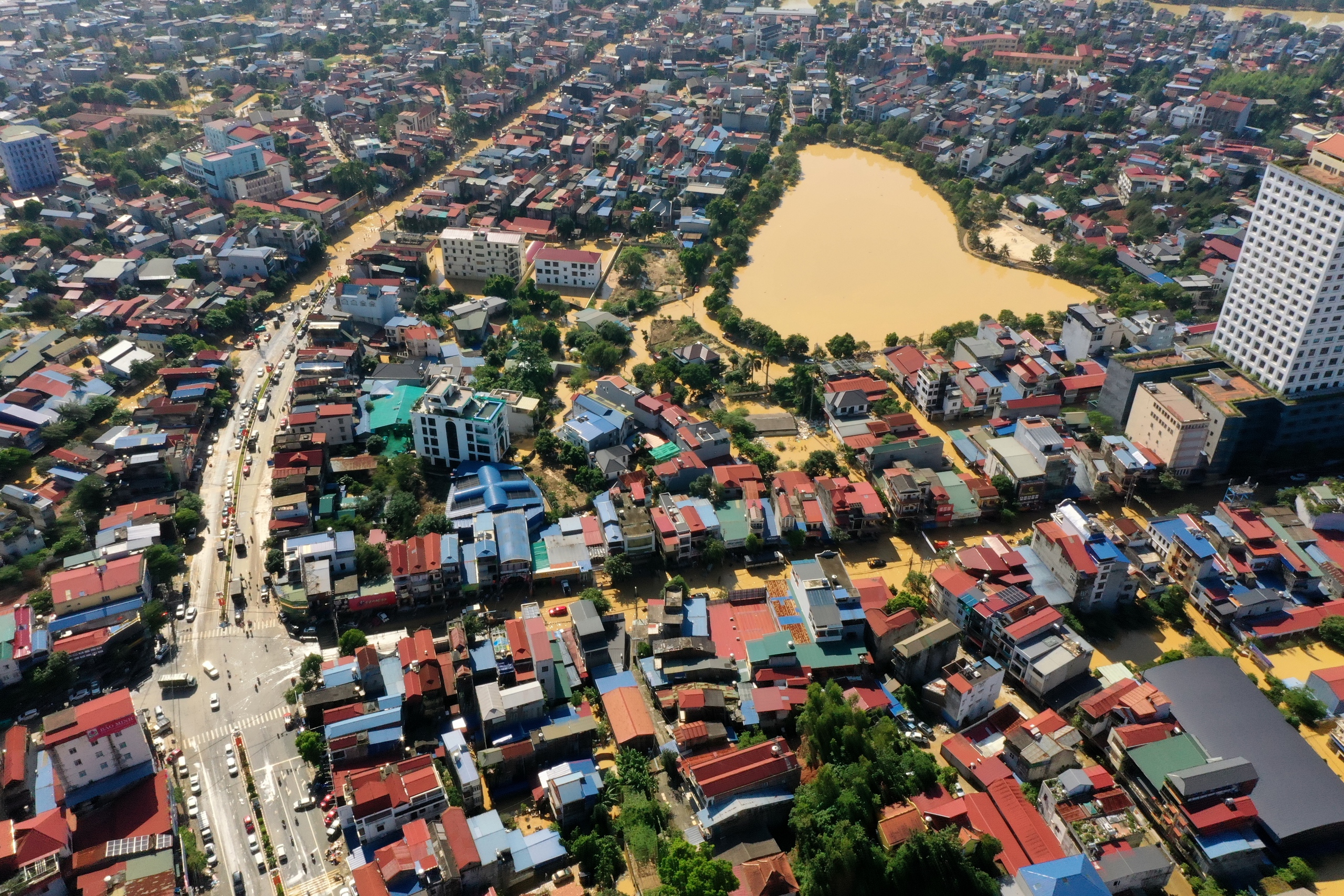 Hồ nước có màu vàng đặc trưng của nước lũ