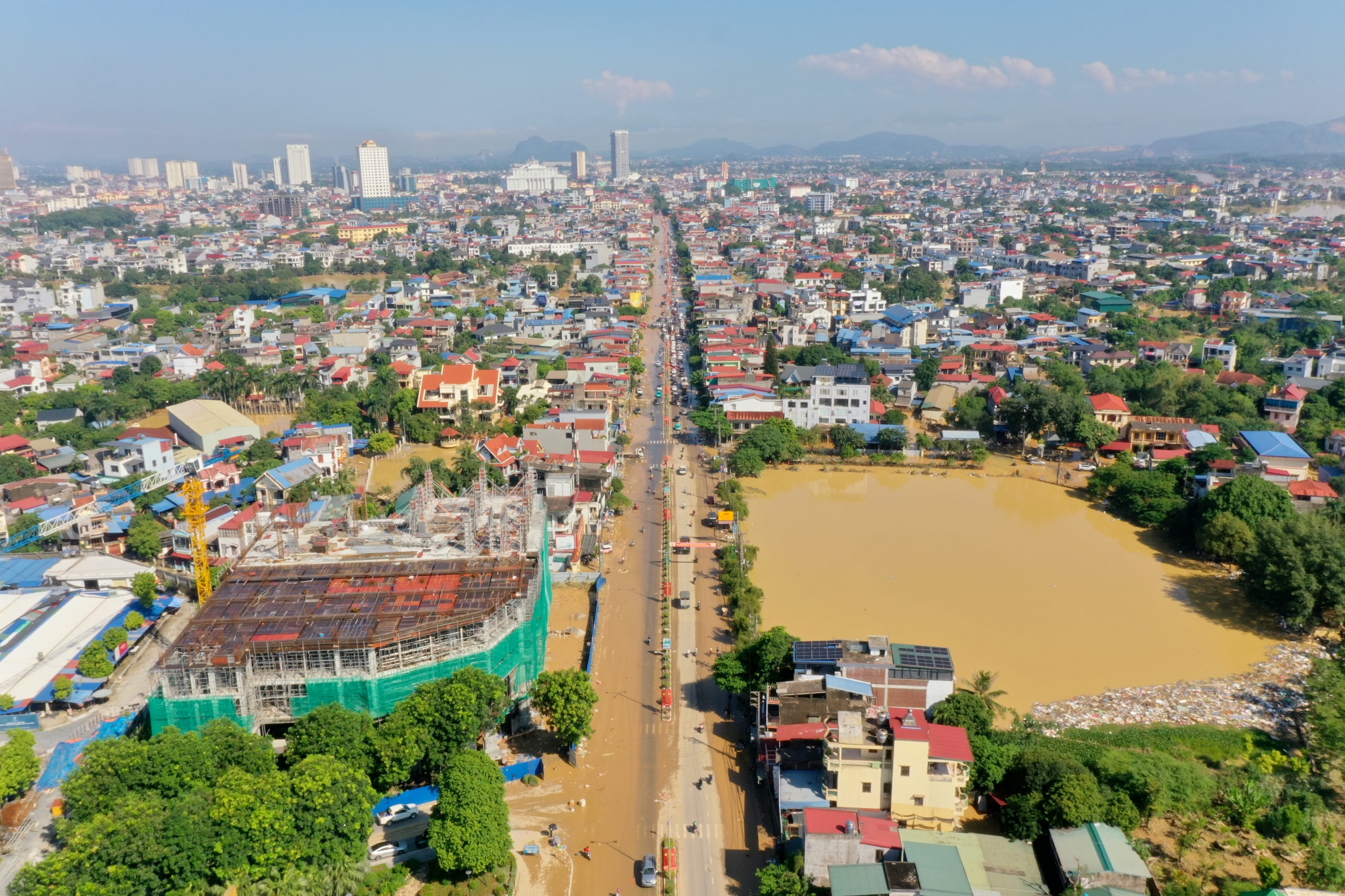 Thái Nguyên sáng nay 9.10, khi vừa trải qua cơn lũ lịch sử, vượt mốc đỉnh lũ năm ngoái hơn 1 m
