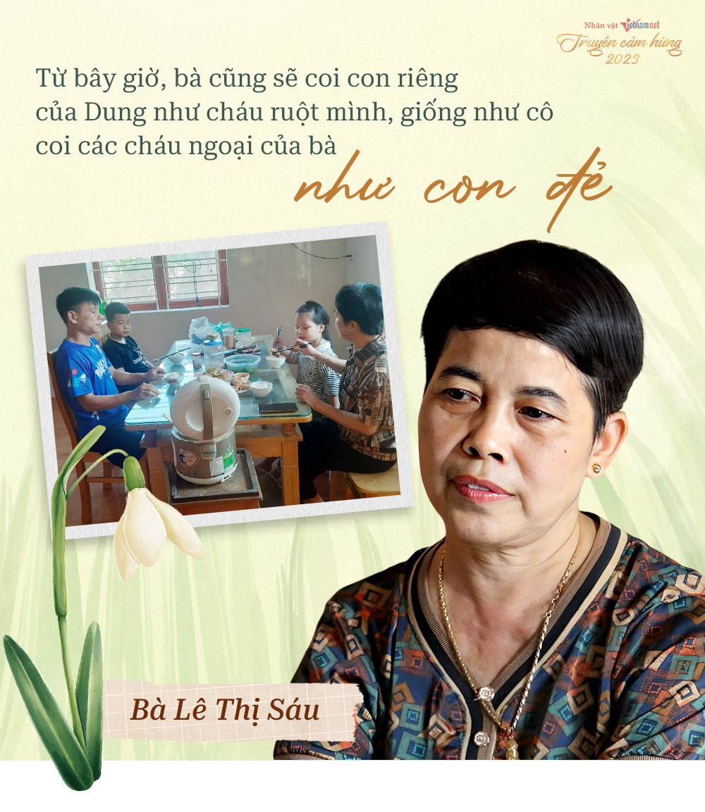 Bà Sáu bảo, từ ngày có vợ mới, Lịch vui vẻ, béo trắng hẳn ra. Bà kể với thái độ mừng vui cho chàng rể thực sự, chứ không hề chất chứa chút giận hờn vì “nó đã quên con gái mình nhanh thế”. Nhưng có lẽ điều bà Sáu vui nhất là sự đón nhận bước đầu của Hương – con gái bà. Bà chia sẻ chân thành rằng từ khi biết tin sẽ có đám cưới, Hương không hoàn toàn hài lòng về chuyện này. Nhưng sau một thời gian được gia đình phân tích, mới đây, cô đã “có lời” nhờ Dung giúp chăm sóc, bảo ban bọn trẻ học hành khi cô không có nhà. Cứ mỗi cuối tuần, Hương lại ghé qua nhà gặp các con, đưa các con đi chơi. Có hôm cô mua bánh kẹo, hoa quả về cho cả 3 đứa trẻ ăn chung. Có lẽ hình ảnh ấy là điều mà bà Sáu luôn mong mỏi được chứng kiến. Giống như bà từng chia sẻ rằng, nếu Hương đi bước nữa, bà hoàn toàn ủng hộ và sẽ đứng ra lo chu toàn đám cưới giống như Lịch. Bà cũng yêu cầu Lịch ủng hộ và chung tay với bà khi vợ cũ có người mới yêu thương và muốn cưới cô. Với bà, cả hai đứa đều là con.