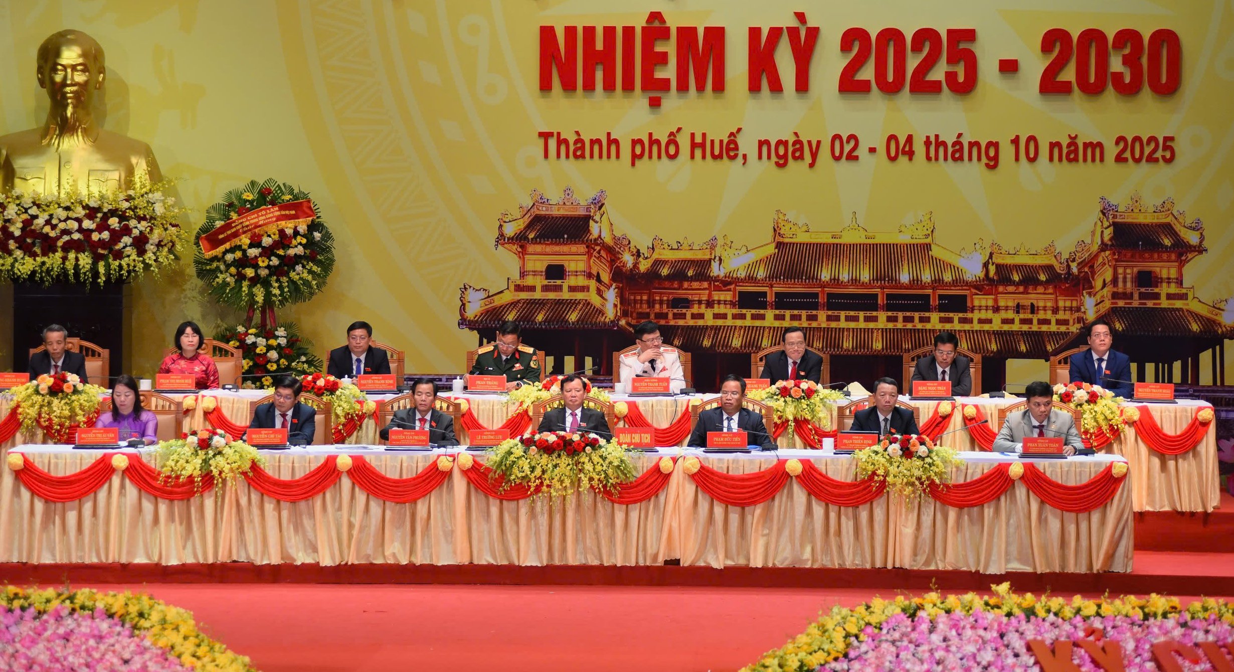Đoàn Chủ tịch điều hành Đại hội Đảng bộ thành phố Huế lần thứ XVII sáng 3/10 |