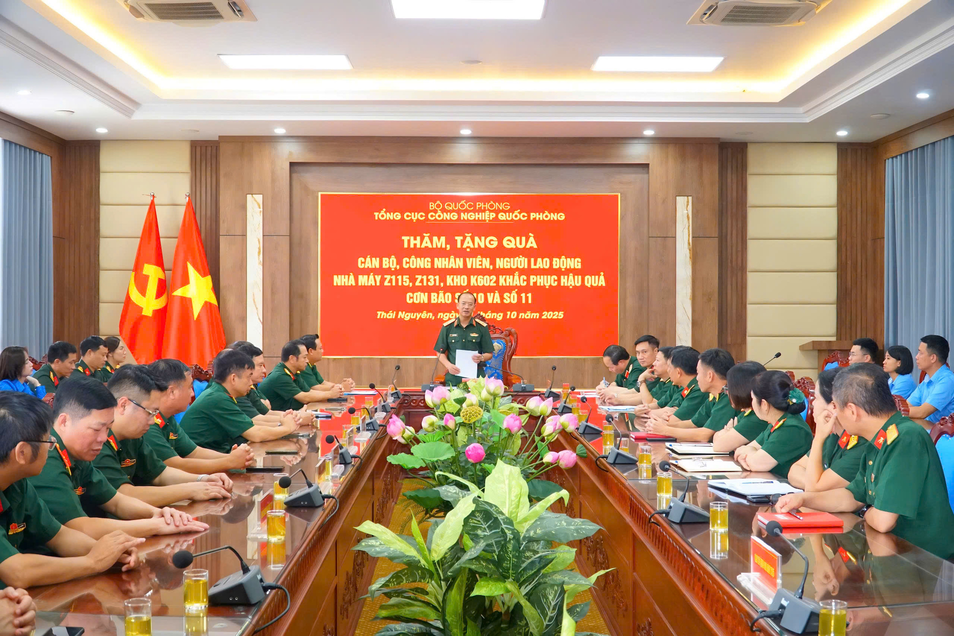 Tham gia đoàn công tác có đại diện lãnh đạo, chỉ huy một số cơ quan, đơn vị thuộc Tổng cục Công nghiệp Quốc phòng. Theo báo cáo của các đơn vị và chia sẻ của chính quyền địa phương, thiên tai đã làm ảnh hưởng nghiêm trọng đến đời sống của nhân dân, cơ sở hạ tầng, trường lớp học, tác động trực tiếp đến hàng nghìn cán bộ, công nhân viên, người lao động của các đơn vị. Thấu hiểu những khó khăn, mất mát, Thường vụ Đảng ủy, Thủ trưởng Tổng cục Công nghiệp Quốc phòng tổ chức đoàn công tác tới thăm, trao quà, hỗ trợ cán bộ, công nhân viên, người lao động, các đối tượng chính sách và nhân dân trên địa bàn tỉnh Thái Nguyên.