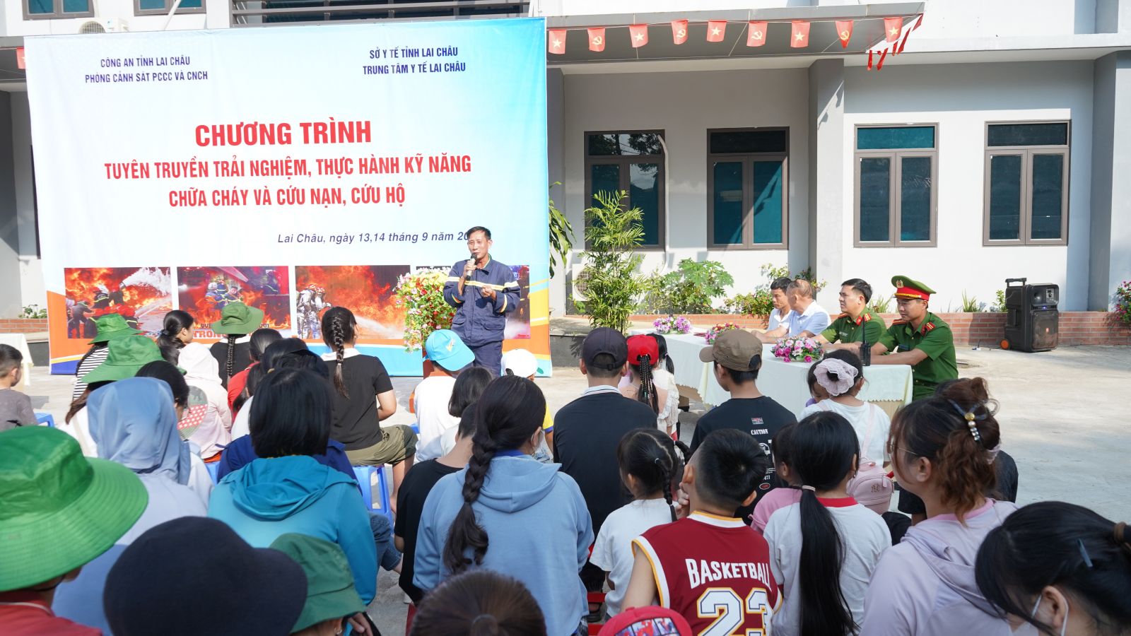 Từ ngày 13 - 14/9, Trung tâm Y tế Lai Châu phối hợp với Phòng Cảnh sát Phòng cháy chữa cháy và cứu nạn cứu hộ (PCCC và CNCH), Công an tỉnh Lai Châu, tổ chức hoạt động trải nghiệm, thực hành chữa cháy và cứu nạn cứu hộ. Đến dự có BSCKI. Phạm Văn Dũng - Phó Giám đốc Trung tâm Y tế, Thiếu tá Đinh Văn Tường - Phó Trưởng phòng Cảnh sát PCCC và CNCH cùng 200 viên chức, người lao động thuộc Trung tâm Y tế Lai Châu và người thân trong gia đình của viên chức, người lao động.