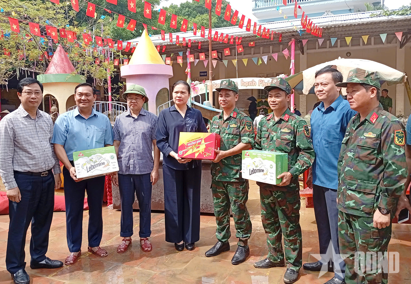 Đồng chí Hà Thị Nga trao quà tặng lực lượng hỗ trợ của Sư đoàn 312. |