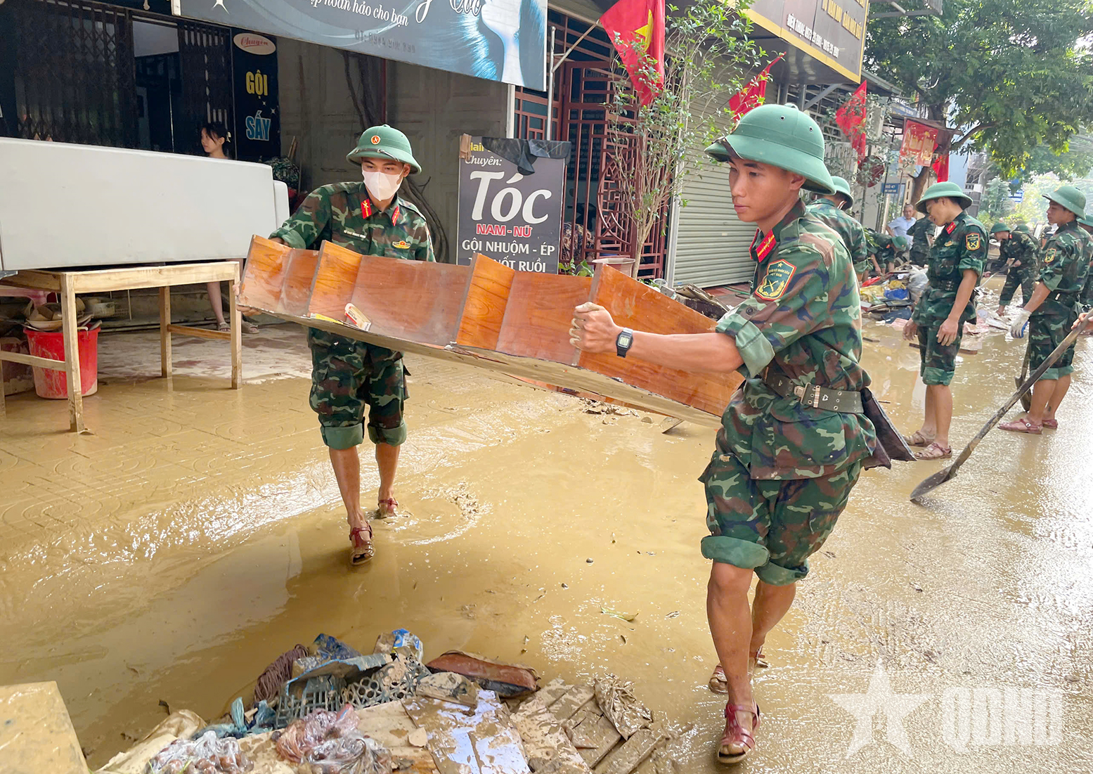 Cán bộ, chiến sĩ Sư đoàn 312 tích cực hỗ trợ chính quyền, nhân dân trên địa bàn tỉnh Thái Nguyên khắc phục hậu quả thiên tai. |